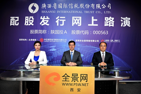 中信建投證券股份有限公司保薦業(yè)務(wù)負(fù)責(zé)人、董事總經(jīng)理劉乃生在推介致辭中指出,陜國投是一家有著三十多年的穩(wěn)健經(jīng)營歷史的信托公司,是國內(nèi)首家上市的非銀行金融企業(yè),中信建投對(duì)陜國投的未來發(fā)展充滿信心,相信陜國投能夠抓住本次配股的發(fā)展機(jī)遇,進(jìn)一步充實(shí)資本金實(shí)力,提高固有資產(chǎn)運(yùn)營效益,支持信托業(yè)務(wù)做優(yōu)做強(qiáng),創(chuàng)造更大的經(jīng)濟(jì)效益,給廣大投資者帶來滿意的回報(bào)。