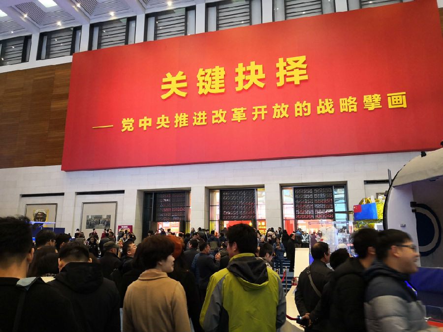 偉大的變革——慶祝改革開(kāi)放40周年大型展覽”分為“偉大的變革、壯美篇章、關(guān)鍵抉擇、歷史巨變、大國(guó)氣象、面向未來(lái)”六個(gè)展區(qū),展覽以改革開(kāi)放40年光輝歷程為主線,聚焦改革開(kāi)放以來(lái)的重大時(shí)間、事件節(jié)點(diǎn),集中宣傳展示改革開(kāi)放和社會(huì)主義現(xiàn)代化建設(shè)取得的重大成就,突出展示黨的十八大以來(lái),以習(xí)近平同志為核心的黨中央堅(jiān)定不移高舉改革開(kāi)放旗幟,推進(jìn)全面深化改革、全面擴(kuò)大開(kāi)放的戰(zhàn)略決策部署。
