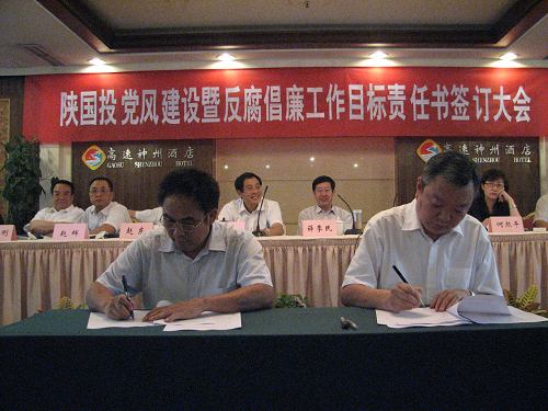 2007年8月24日下午,公司在高速神州酒店召開了陜國投黨風(fēng)建設(shè)暨反腐倡廉工作目標責(zé)任書簽訂大會。