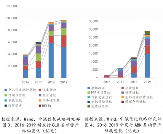 從2019年情況來看,信托公司增量和存量資產(chǎn)證券化業(yè)務(wù)基礎(chǔ)資產(chǎn)類型豐富,同時(shí)對(duì)基礎(chǔ)資產(chǎn)的風(fēng)控要求進(jìn)一步提高,底層分散和資質(zhì)較好的基礎(chǔ)資產(chǎn)更受青睞。