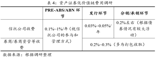 未來,信托公司將擺脫單純SPV角色,盡快構(gòu)建業(yè)務(wù)能力,提高業(yè)務(wù)主導(dǎo)性,拓展“發(fā)行+分銷”打包服務(wù),資產(chǎn)證券化業(yè)務(wù)將逐步提升對(duì)信托公司的收入貢獻(xiàn)。從資產(chǎn)證券化價(jià)值鏈來看,信托公司開展Pre-ABS/ABN業(yè)務(wù)帶有較大的機(jī)會(huì)性,但分銷環(huán)節(jié)的積極參與已成為各家的重要發(fā)力點(diǎn),實(shí)行“發(fā)行+分銷”打包將成為業(yè)務(wù)趨勢(shì)。一方面,通過實(shí)施“發(fā)行+分銷”打包,整體報(bào)酬率將達(dá)到千二以上,資產(chǎn)證券化業(yè)務(wù)將獲得更好的收入貢獻(xiàn)。另一方面,報(bào)酬率的提高有利于提高業(yè)務(wù)人員展業(yè)積極性,有利于吸引外部成熟人才,并進(jìn)一步提高信托公司開展資產(chǎn)證券化業(yè)務(wù)的能力和競(jìng)爭(zhēng)優(yōu)勢(shì)。據(jù)調(diào)研,券商/券商資管等開展資產(chǎn)證券化業(yè)務(wù),多采取“發(fā)行+承銷”打包的服務(wù)方式,合計(jì)收費(fèi)在千二到千三左右,同時(shí)券商/券商資管等往往采取前端一次性收費(fèi)的方式,相比之下信托公司發(fā)行環(huán)節(jié)按年收費(fèi)和分銷環(huán)節(jié)一次性收費(fèi)則可實(shí)現(xiàn)更高收入,因此在實(shí)施市場(chǎng)化考核的情況下,信托公司資產(chǎn)證券化業(yè)務(wù)人員展業(yè)積極性將有所提高,對(duì)外部成熟人才的吸引力也將增強(qiáng),信托公司資產(chǎn)證券化業(yè)務(wù)的競(jìng)爭(zhēng)優(yōu)勢(shì)將進(jìn)一步凸顯。