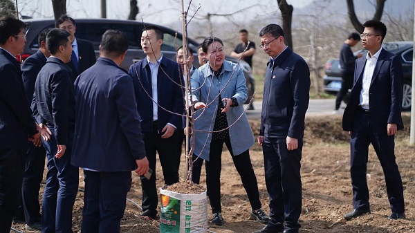 解志炯深入田間地頭和村街小巷、村委會大院,詳細查看了近年來公司在武安村修筑的深井和飲水、灌溉、電力工程,了解公司去年支持建設的蘋果高接換種示范園、果蔬雜糧冷庫和近期正在建設的高標準蘋果矮化示范園情況,檢查今年春季公司支持在三條村巷道路栽植的高桿月季,參觀了修繕一新的村委會辦公條件、群眾劇臺、幸福院等項目,與鎮(zhèn)、村干部和駐村工作隊座談研究深入推進幫扶工作。